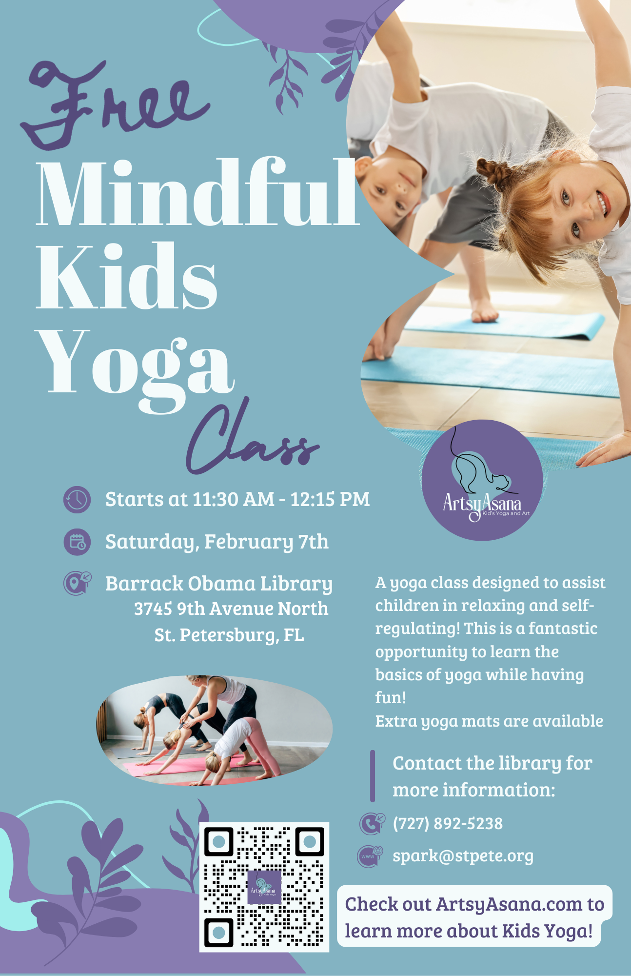 Parents are welcome to sit in and join. Due to the high-energy nature of kids’ yoga, please participate with caution and mindfulness.
